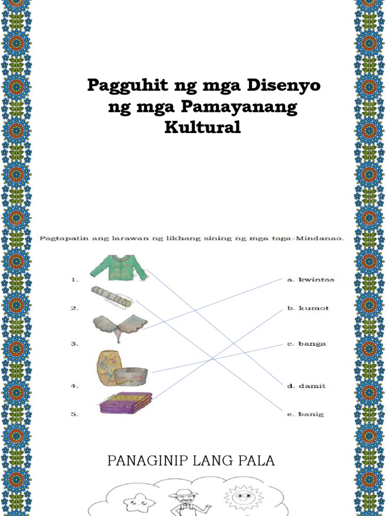 Some of the worksheets. 1Ang mga pangkat etniko na gumagamit ng mga dibuhong araw bituin at tao sa kanilang disenyo ay Agta Bagobo Ifugao Maranao at Kalinga. K TO 12 GRADE 4 TEACHERS GUIDE IN ARTS Q1-Q4 LiGhT ArOhL.