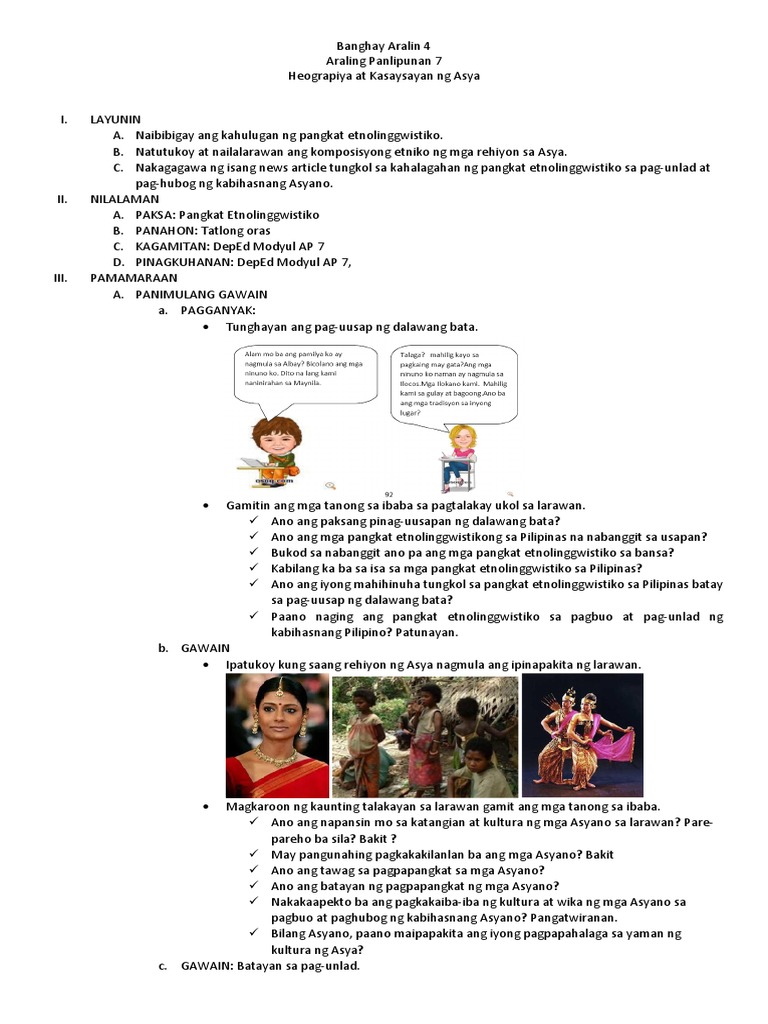 PANGKAT ETNOLINGGWISTIKO SA ASYA Ang pangkat etnolinggwistiko ay tumutukoy sa pangkat ng mga tao sa isang bansa na may magkakaparehong wika kultura at etnisidad. Additional terms may apply. Nasusuri ang kaugnayan ng yamang-tao ng mga bansa ng Asya sa pagpapaunlad ng kabuhayan at lipunan sa kasalukuyang panahon batay sa.